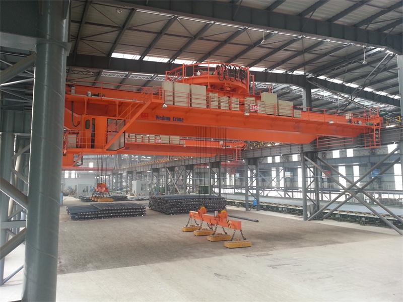 1.本起重机带有可拆卸的电磁盘,特别适用于搬运具有导磁性的黑色金属制品与材料如钢锭、型钢、生铁块等。主要用于钢铁企业扎线、成品,船厂钢料堆场、下料车间等。