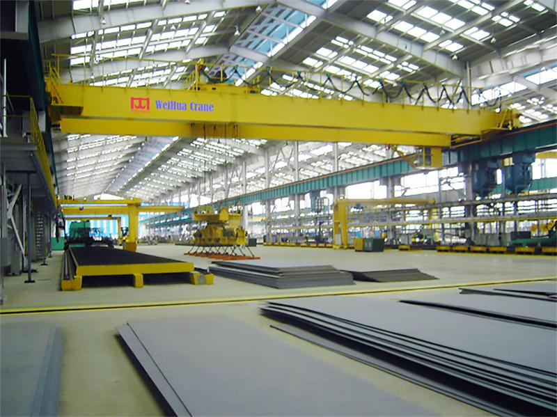 1.本起重机带有可拆卸的电磁盘,特别适用于搬运具有导磁性的黑色金属制品与材料如钢锭、型钢、生铁块等。主要用于钢铁企业扎线、成品,船厂钢料堆场、下料车间等。