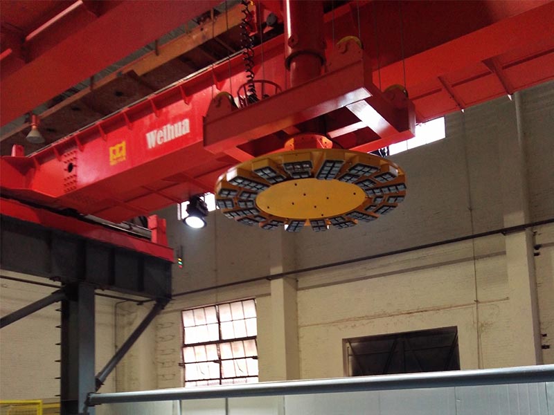 4.起重机可自动加装吊具、自动装配硅钢片存储架等,真正实现起重机无人值守、全自动搬运功能。
